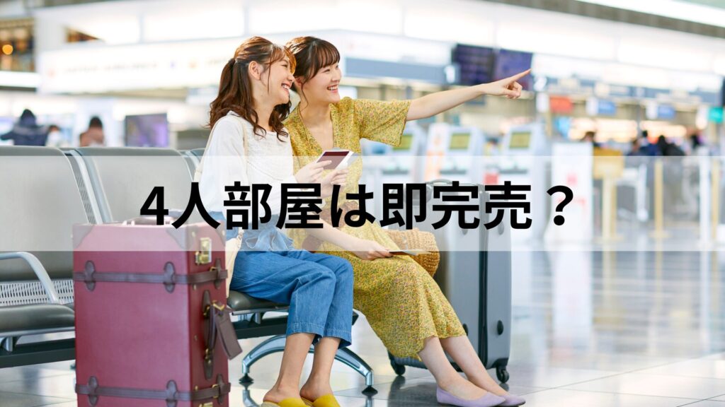 特にGW・夏休み・年末年始のシーズンには、4人部屋は発売開始から数日で埋まります。