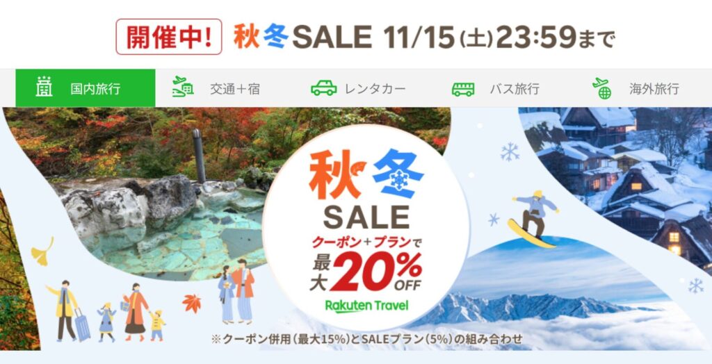 楽天トラベル秋冬SALE 11/15(土)23:59まで